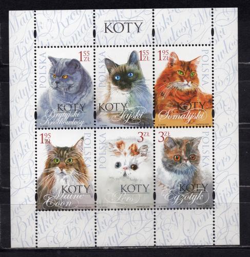 Почтовые марки. Польша, 2010 г. Кошки. Бл. 191