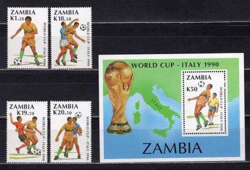 Почтовые марки. Замбия. 1990г. Футбол. №515-518. Блок №18.