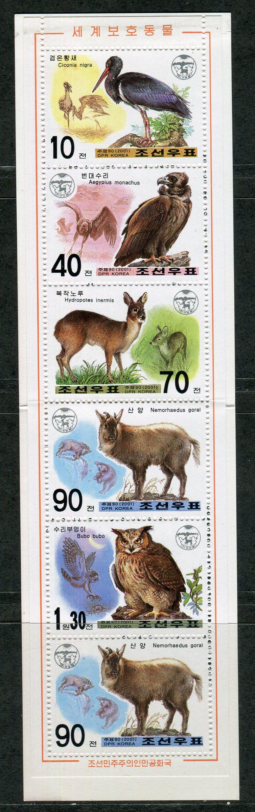 Почтовые марки. КНДР, 2001 г. Охраняемые животные. Mi.No. 4487 - 4490. Буклет.