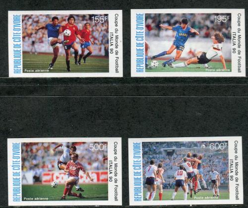 Почтовые марки. Кот д'Ивуар, 1990г. Чемпионат мира по футболу FIFA, Италия. Mi.No. 1014 - 1017 Буззуб.