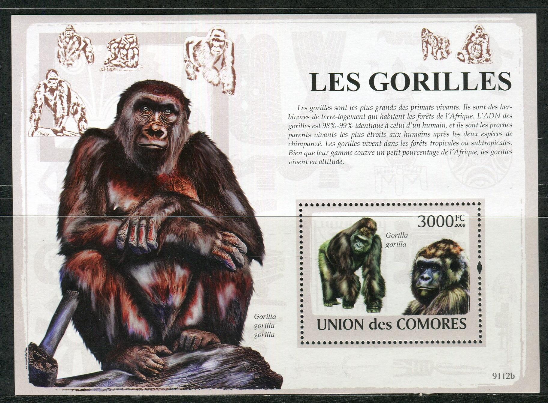 Почтовые марки. Коморы, 2009 г. Гориллы. Блок № 478.