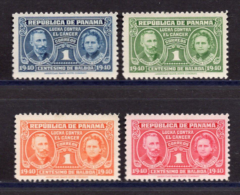 Почтовые марки. Панама. 1941. Пьер и Мария Кюри. Металлография. № 6-9. Чист с накл.