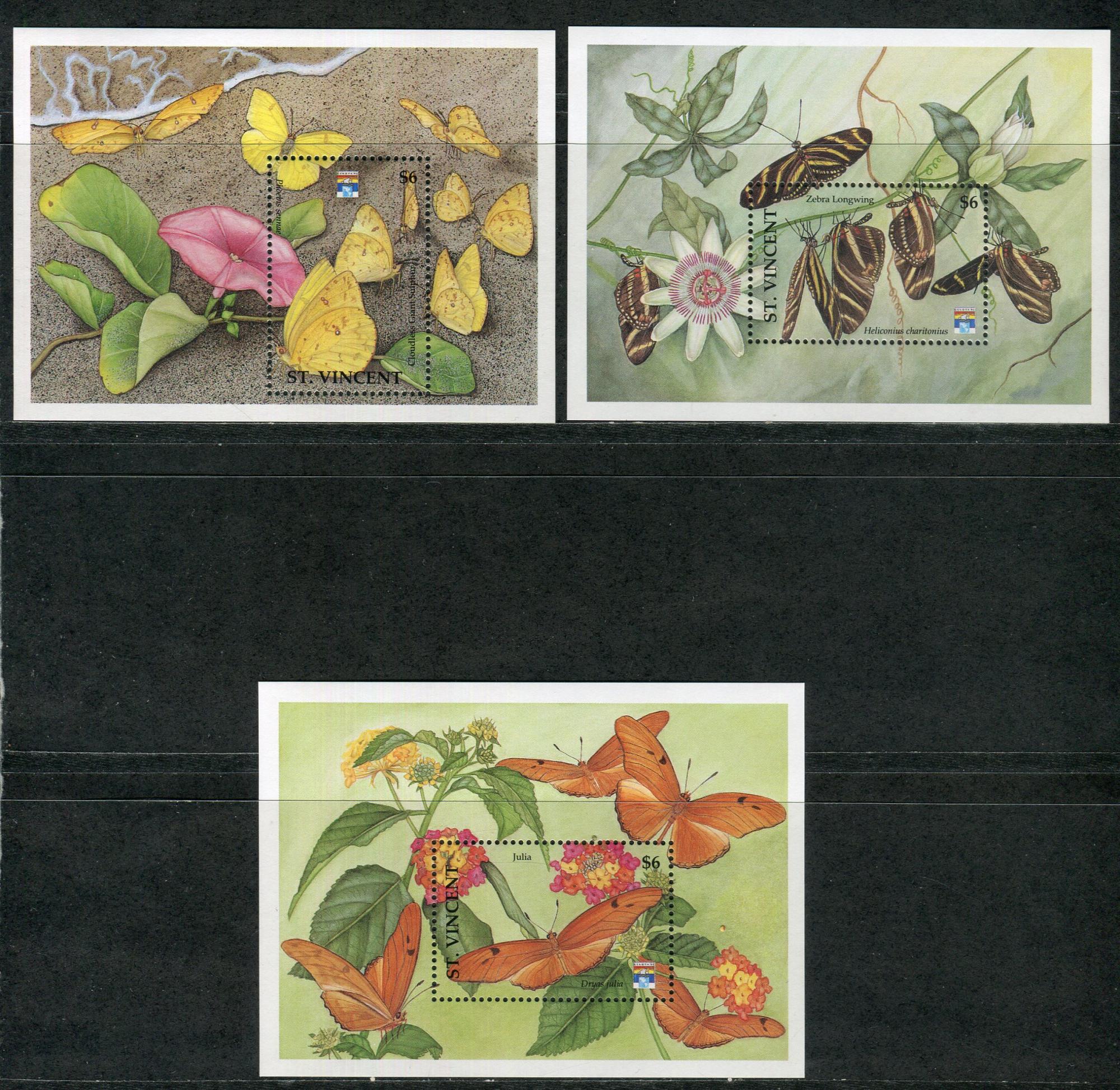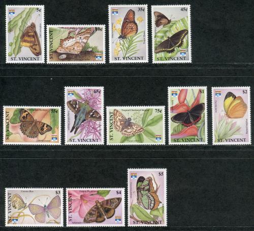 Почтовые марки. Сент-Винсент, 1992 г. Бабочки. Mi.No. 2014 - 2025, Бл. № 212-214. (Mi 44,50 €).