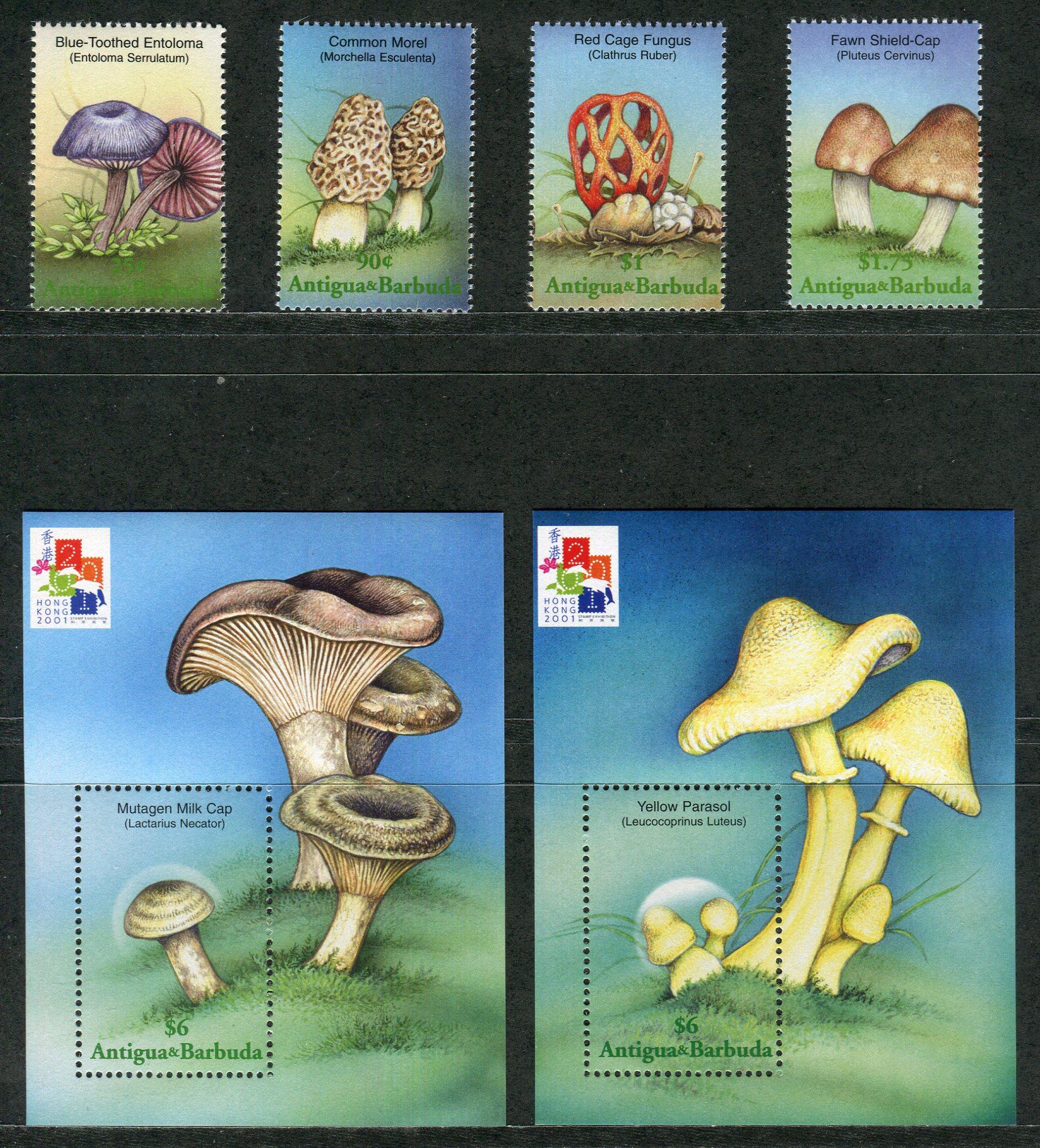 Почтовые марки. Антигуа и Барбуда, 2001 г. Грибы. Mi.No. 3411 - 3426, Бл. 495, 496. (Mi 37.50 €)