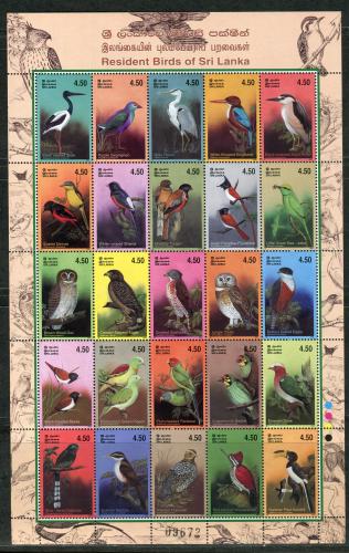 Почтовые марки. Шри-Ланка, 2003 г. Местные птицы. Mi.No. 1410 - 1434 Лист. (Mi 15,00 €)