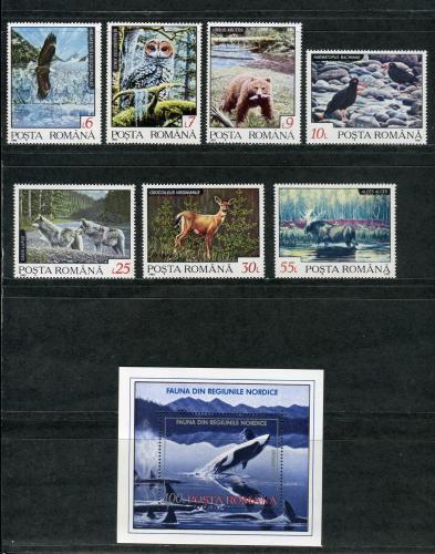 Почтовые марки. Румыния, 1992г. Животные Северного региона. Фотогравюра.Mi.No. 4836 - 4842, Бл.278.