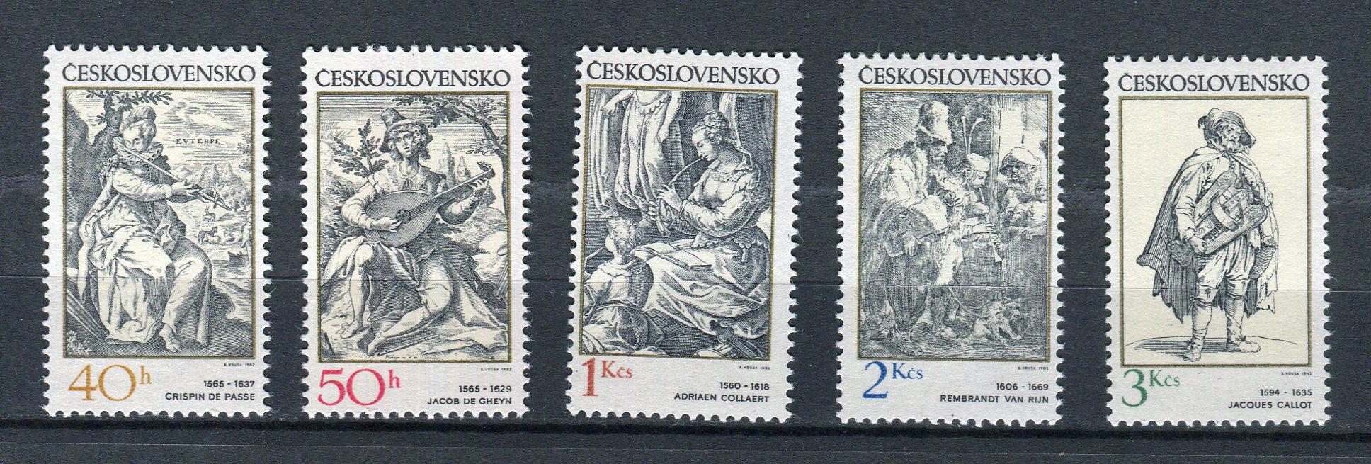 Почтовые марки. Чехословакия, 1982 г. Музыкальные мотивы на старинных гравюрах. Mi.No. 2661 - 2665