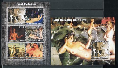 Почтовые марки. Чад, 2002 г. Поль Дельво. №2328 -2333 МЛ, Бл.343.