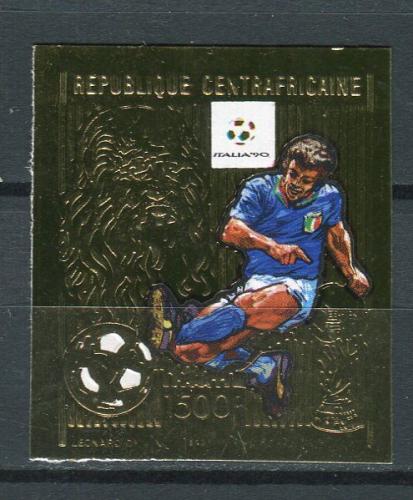Почтовые марки. Центральноафриканская Республика, 1989 г. Чемпионат мира по футболу 1990 года, Италия. Фольга. Беззуб. Mi 22,00 €