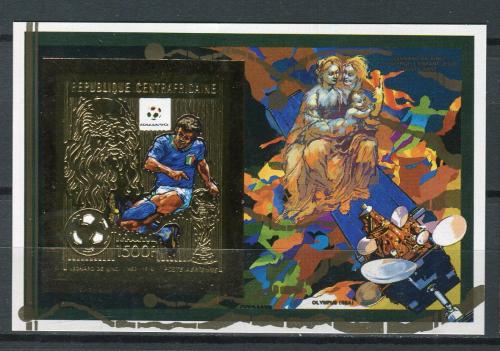 Почтовые марки. Центральноафриканская Республика, 1989 г. Чемпионат мира по футболу 1990 года, Италия. Фольга. Бл. № 483 B. Беззуб. (Mi 45,00 €)