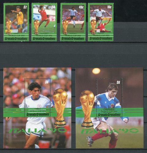 Почтовые марки. Гренада и Гренадины, 1990 г.Чемпионат мира по футболу. Италия. Mi.No. 1303 - 1306, Бл. №196, 197. (Mi 21.00 €)