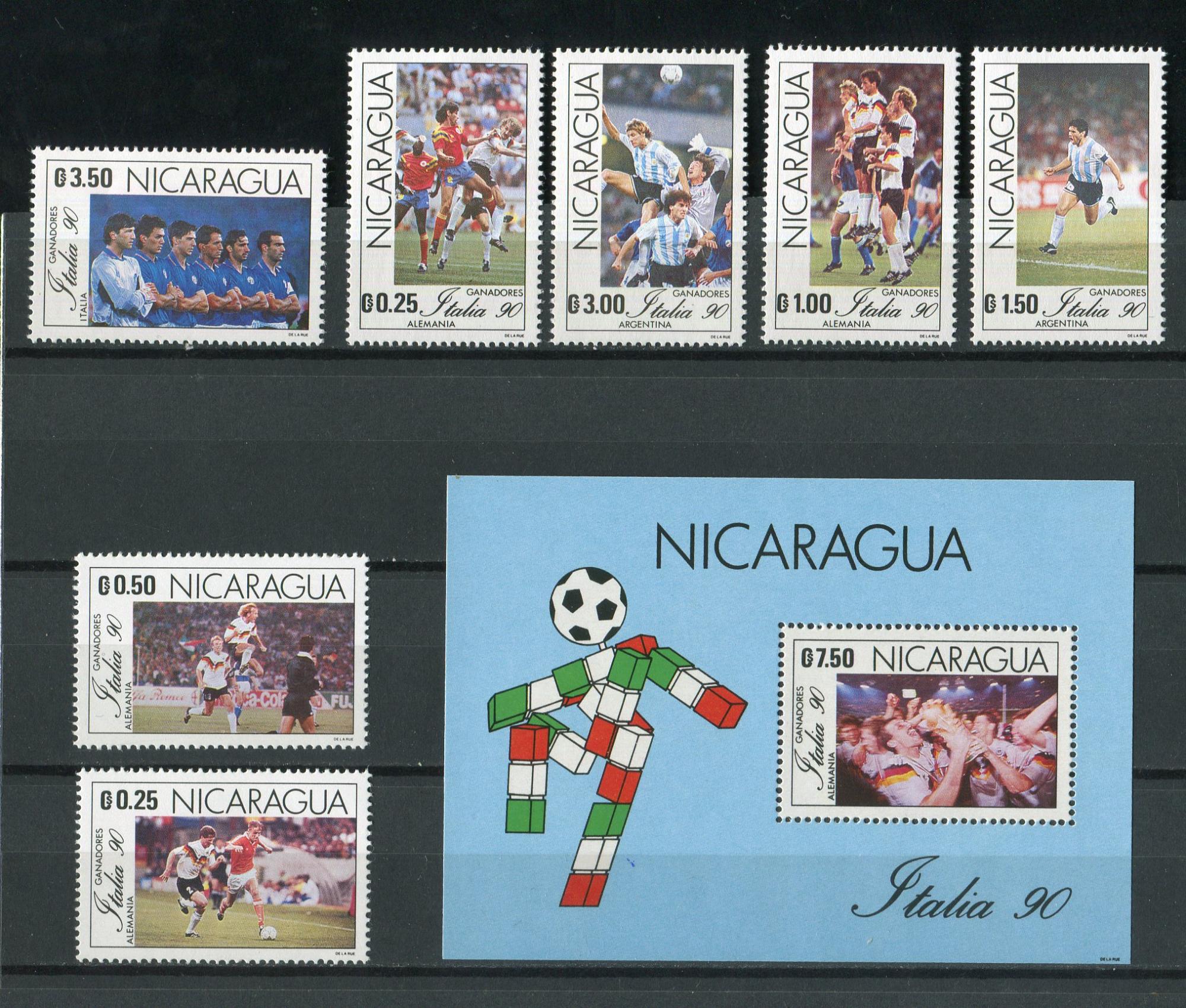 Почтовые марки. Никарагуа, 1991 г. Чемпионат мира по футболу. Mi.No. 3039 - 3045, Бл. № 194.