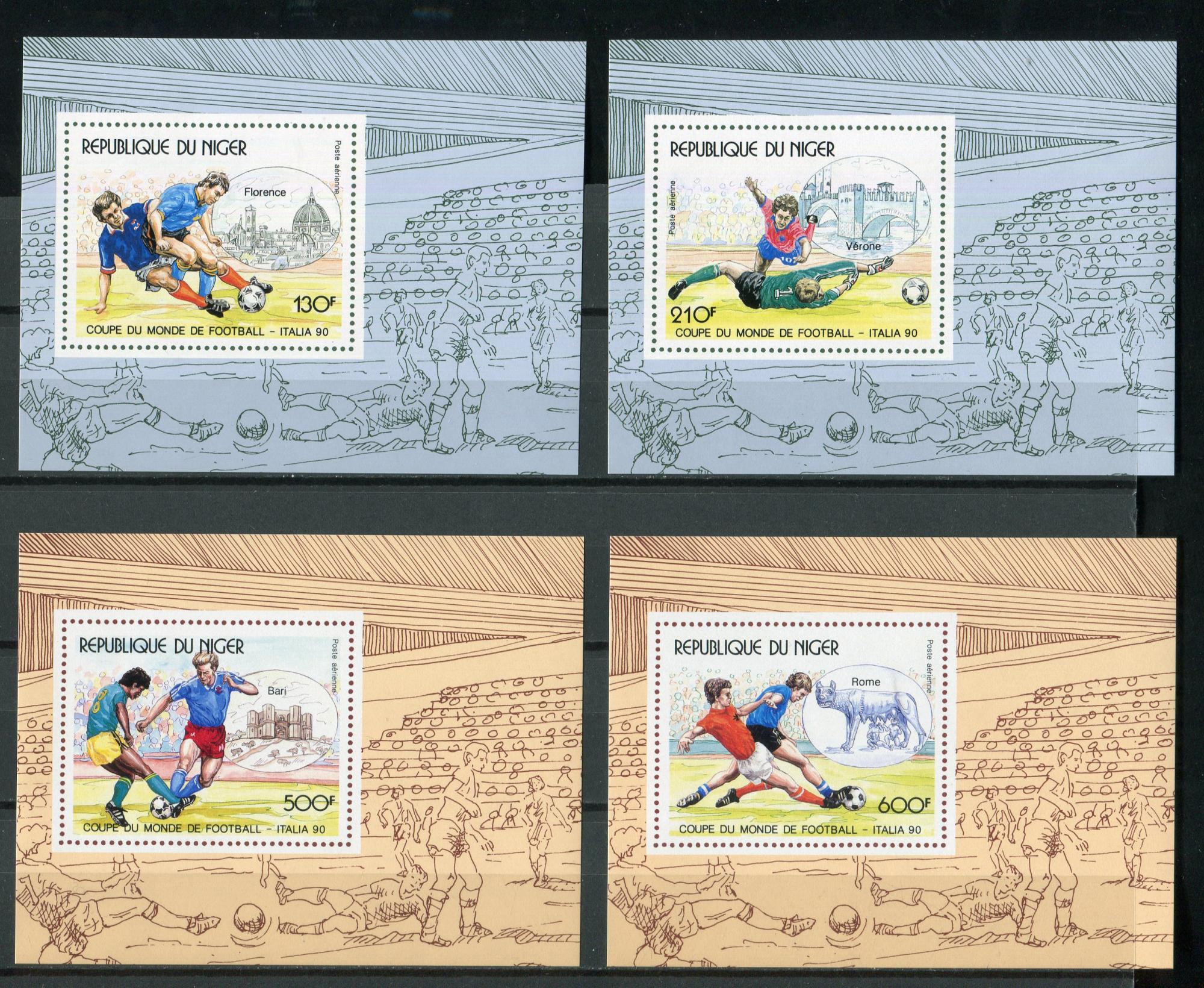 Почтовые марки. Нигер, 1990 г. Чемпионат мира по футболу, Италия. Mi.No. 1090 - 1093 Люкс-блоки.