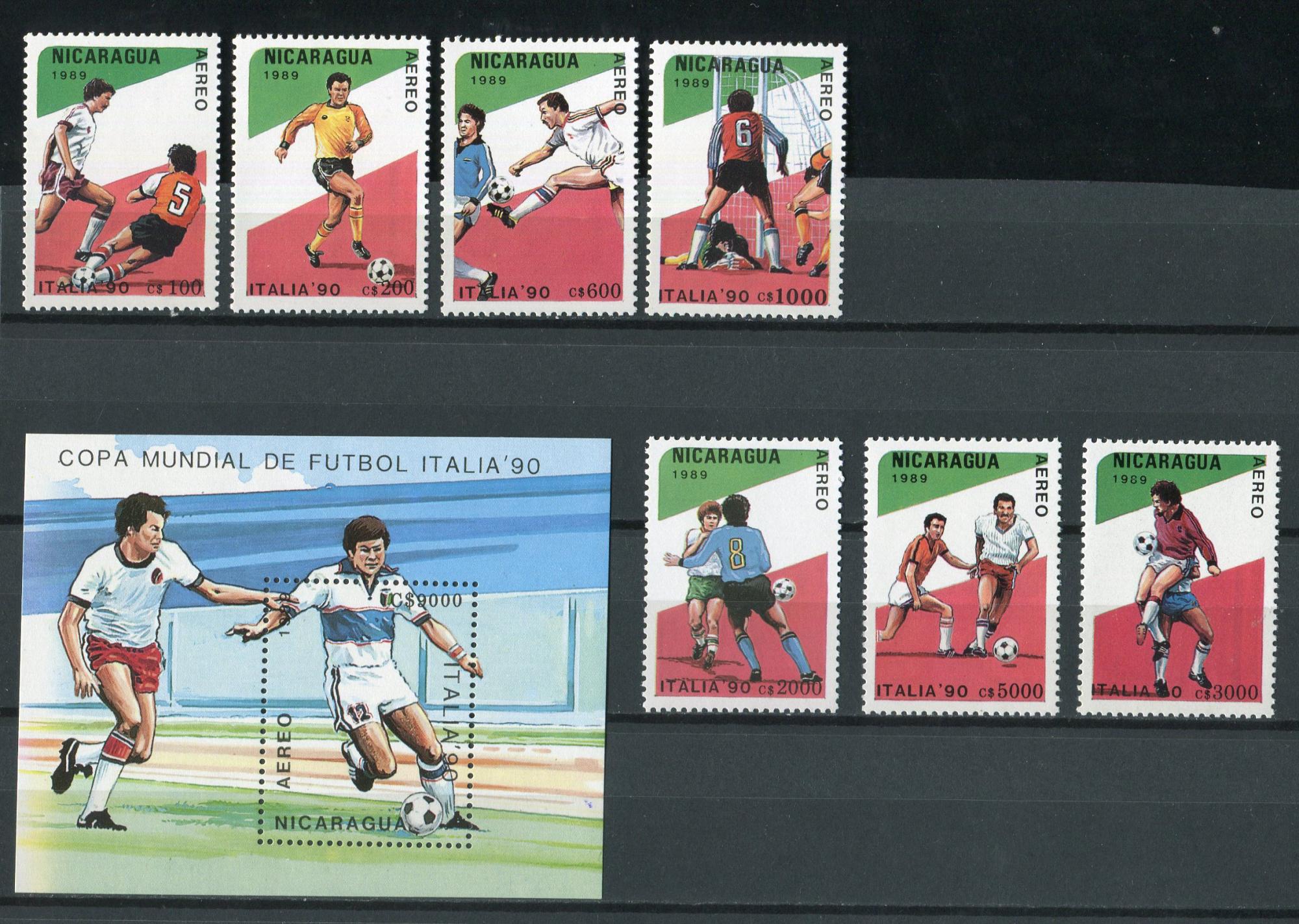 Почтовые марки. Никарагуа, 1989 г. Чемпионат мира по футболу, Италия. Mi.No. 2934 - 2940, Бл. № 183.