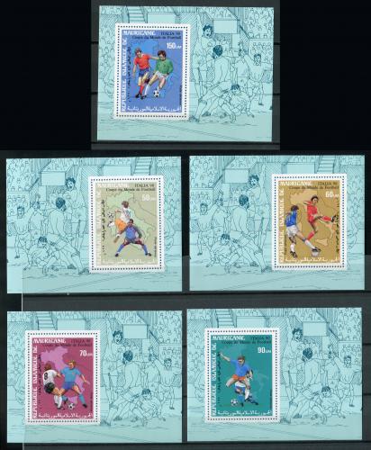 Почтовые марки. Мавритания, 1990 г. Чемпионат мира по футболу, Италия. Mi.No. 962 - 966 Люкс-блоки.