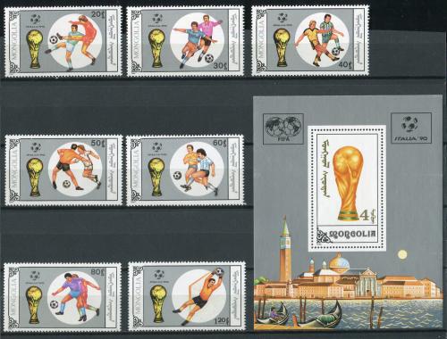 Почтовые марки. Монголия, 1990 г. Чемпионат мира по футболу. Италия. Mi.No. 2121 - 2127, Бл.146