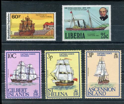 Почтовые марки. Мэн, Джерси, Фиджи и др. Корабли. Сб. лот.
