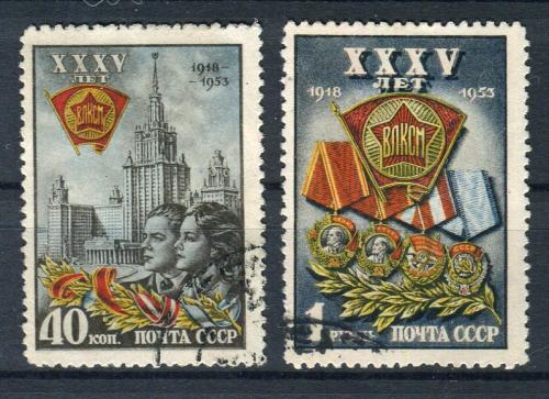 Почтовые марки. СССР, 1953 г. №1729-30. 35-летие Всесоюзного Ленинского Коммунистического Союза Молодежи.