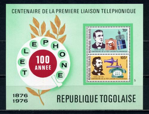 Почтовые марки. Того. 1976г. 100-летие телефона. Блок №102.