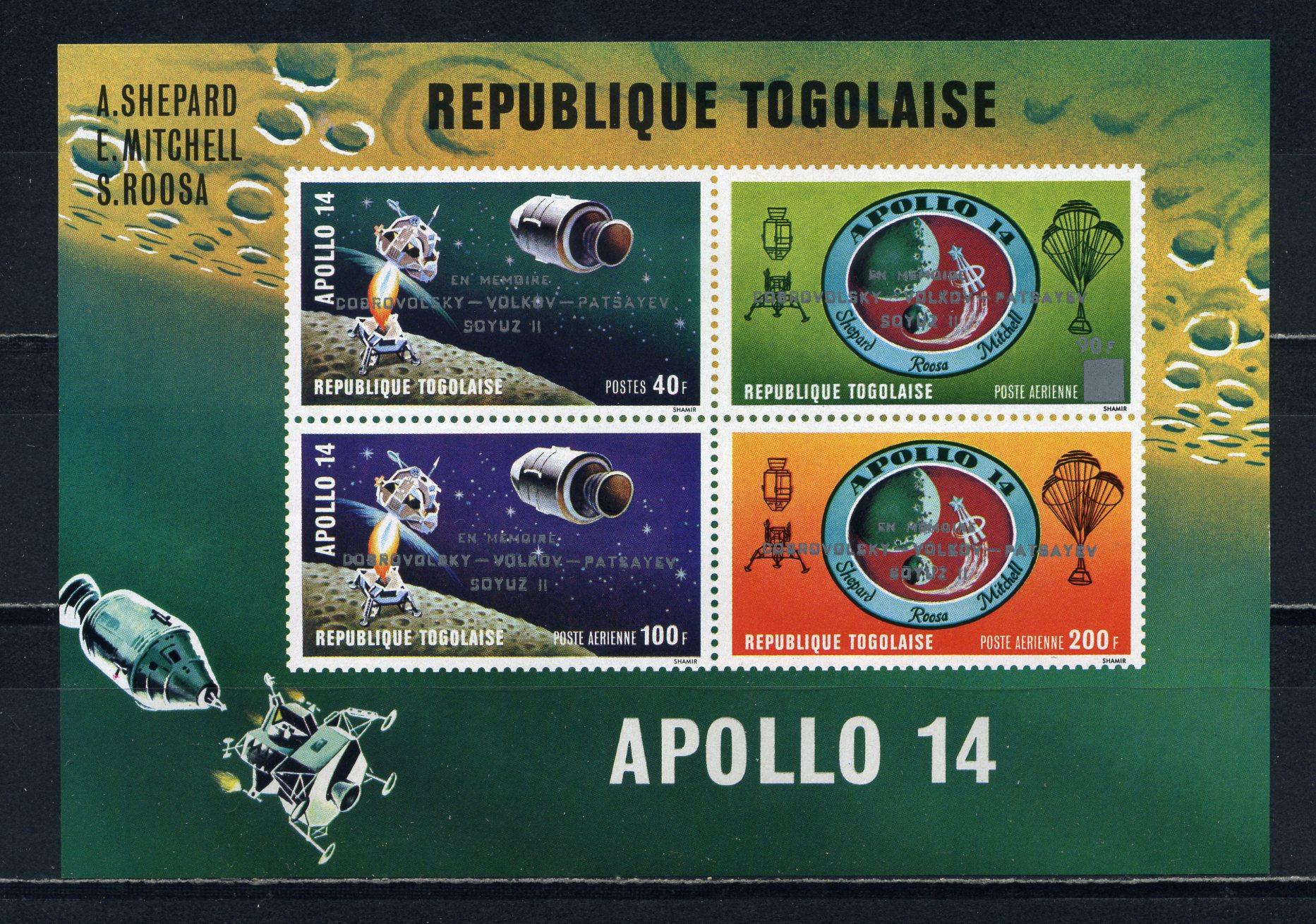 Почтовые марки. Того. 1971г. Космос. Союз-11. Надпечатка. Блок №58в. Беззубц.