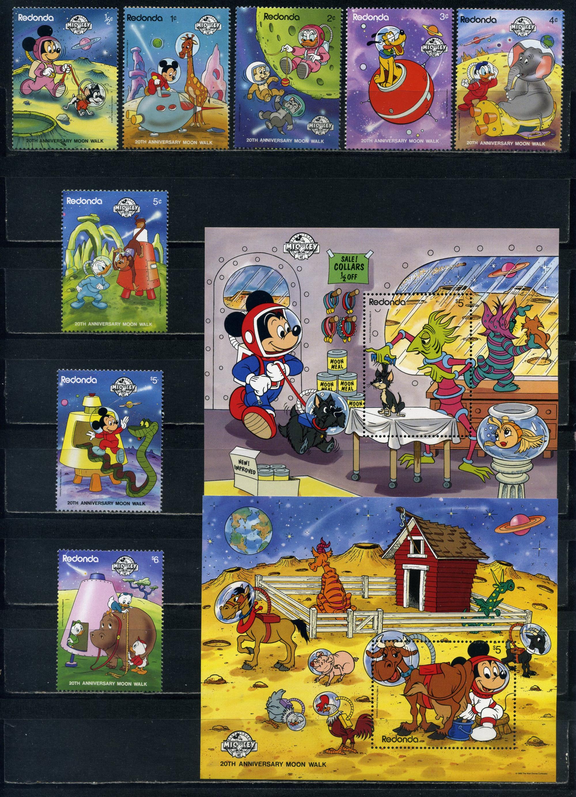 Почтовые марки. Редонда. 1989г. Мультфильмы. Комплект. №303-310. Блок №52-53 (Mi: 20.00 Евро)
