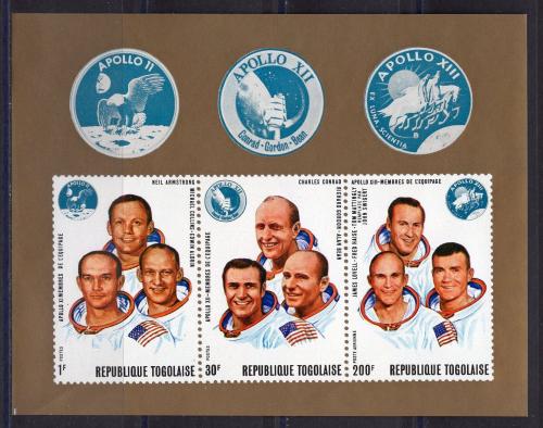 Почтовые марки. Того. 1970г. Космос. Аполлон 11-13. Блок №49в. Беззубц.