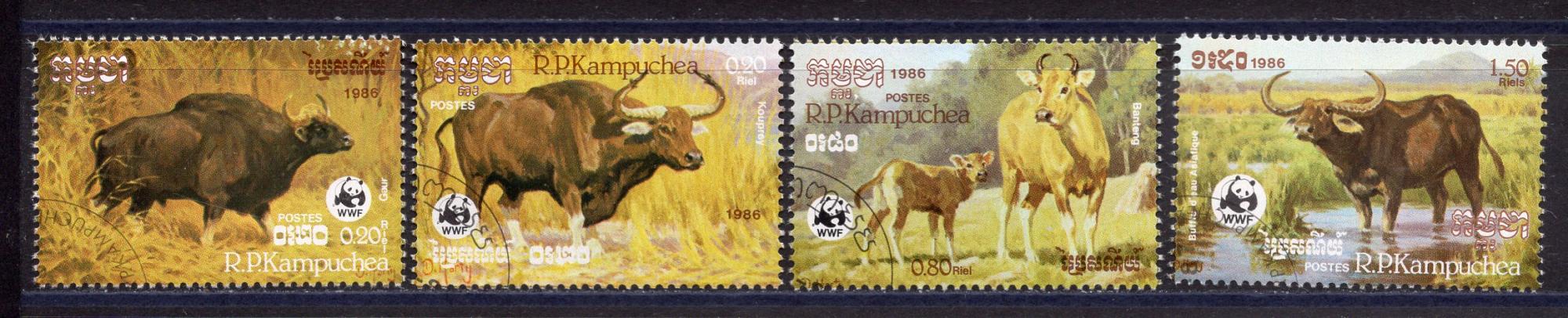 Почтовые марки. Кампучия. 1986г. WWF. Буйволы. №823-826.