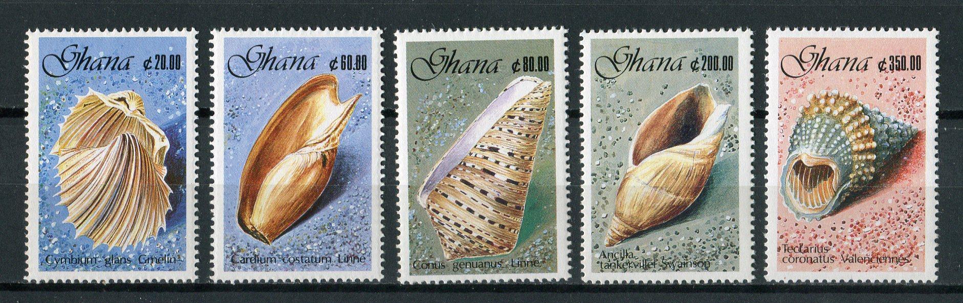 Почтовые марки. Гана, 1990 г. №1364-1368. Ракушки (Mi 20.00 €)