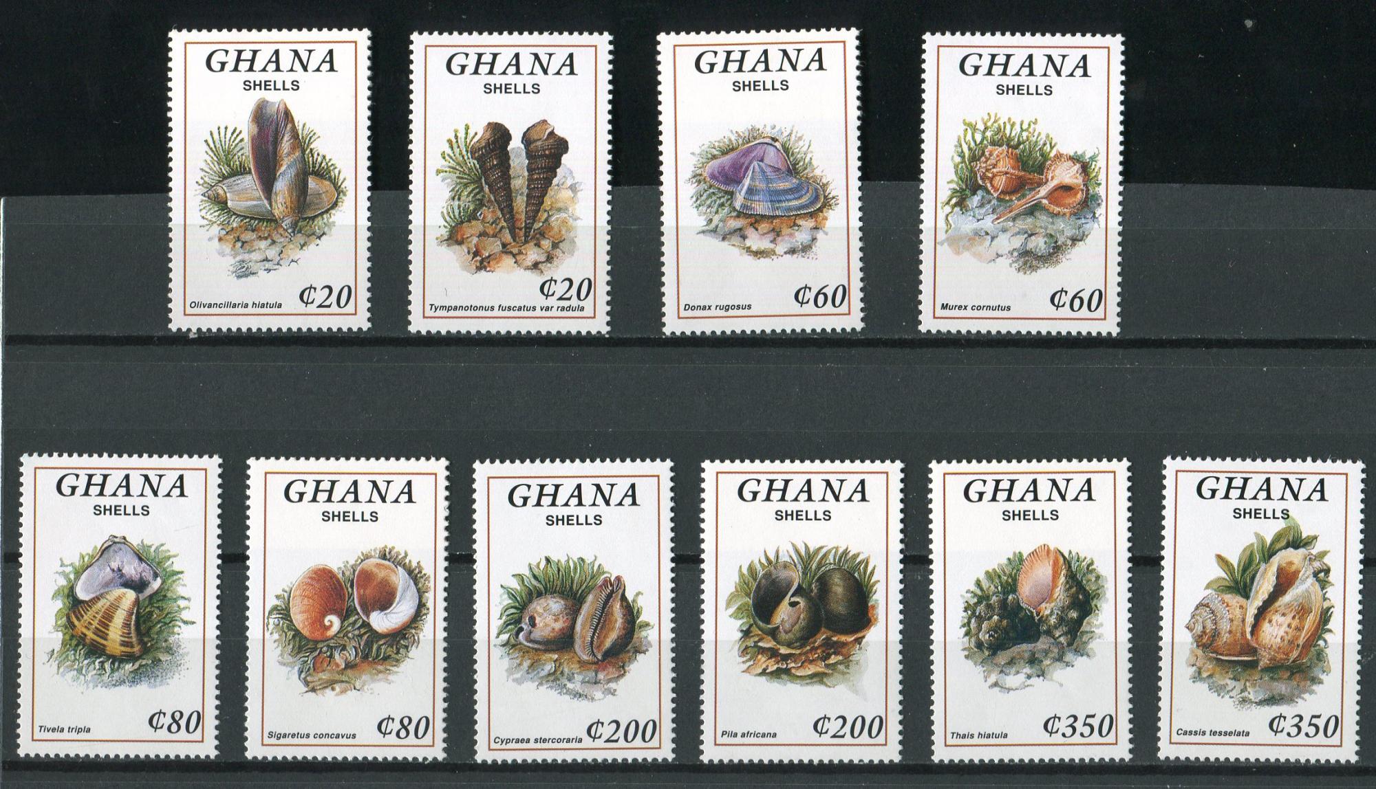 Почтовые марки. Гана, 1992 г. №1731-1740. Ракушки.