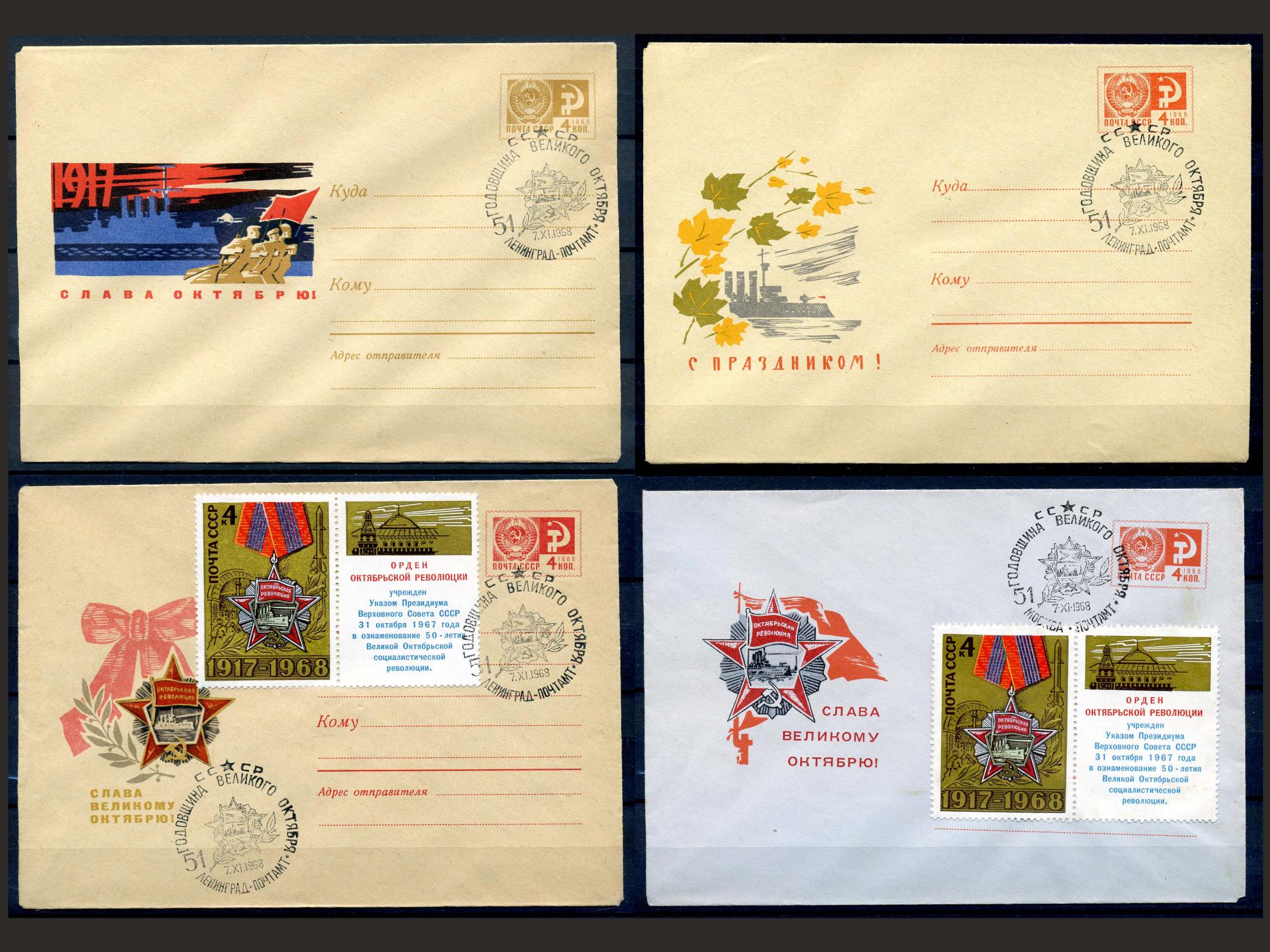 Почтовый конверт ХМК со СГ. СССР 1968 г. 51-я годовщина Великого Октября. (1,2-КЗ; 2,3-КО)