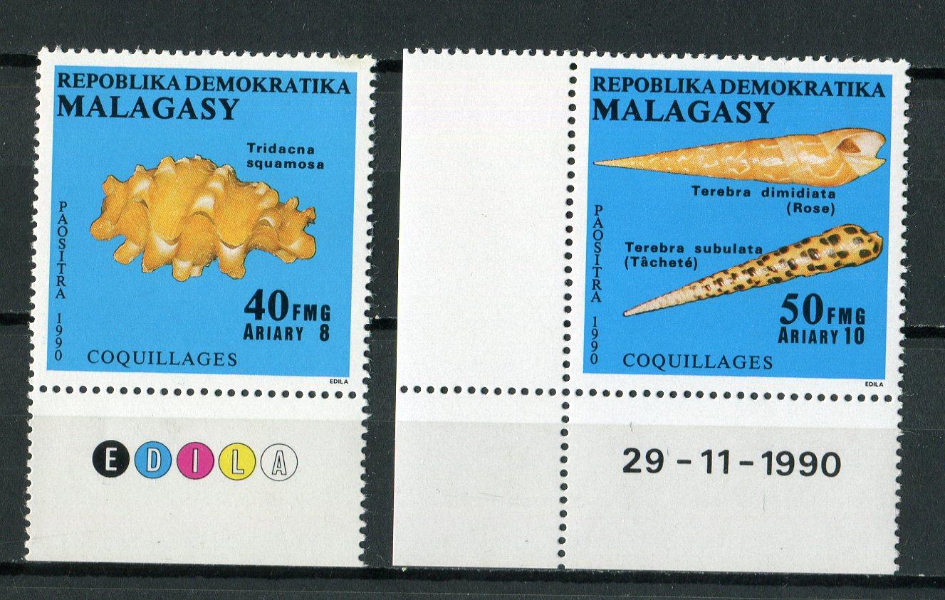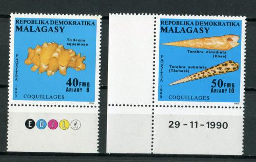 Почтовые марки. Мадагаскар, 1990 г. №1279-1280. Морские раковины.