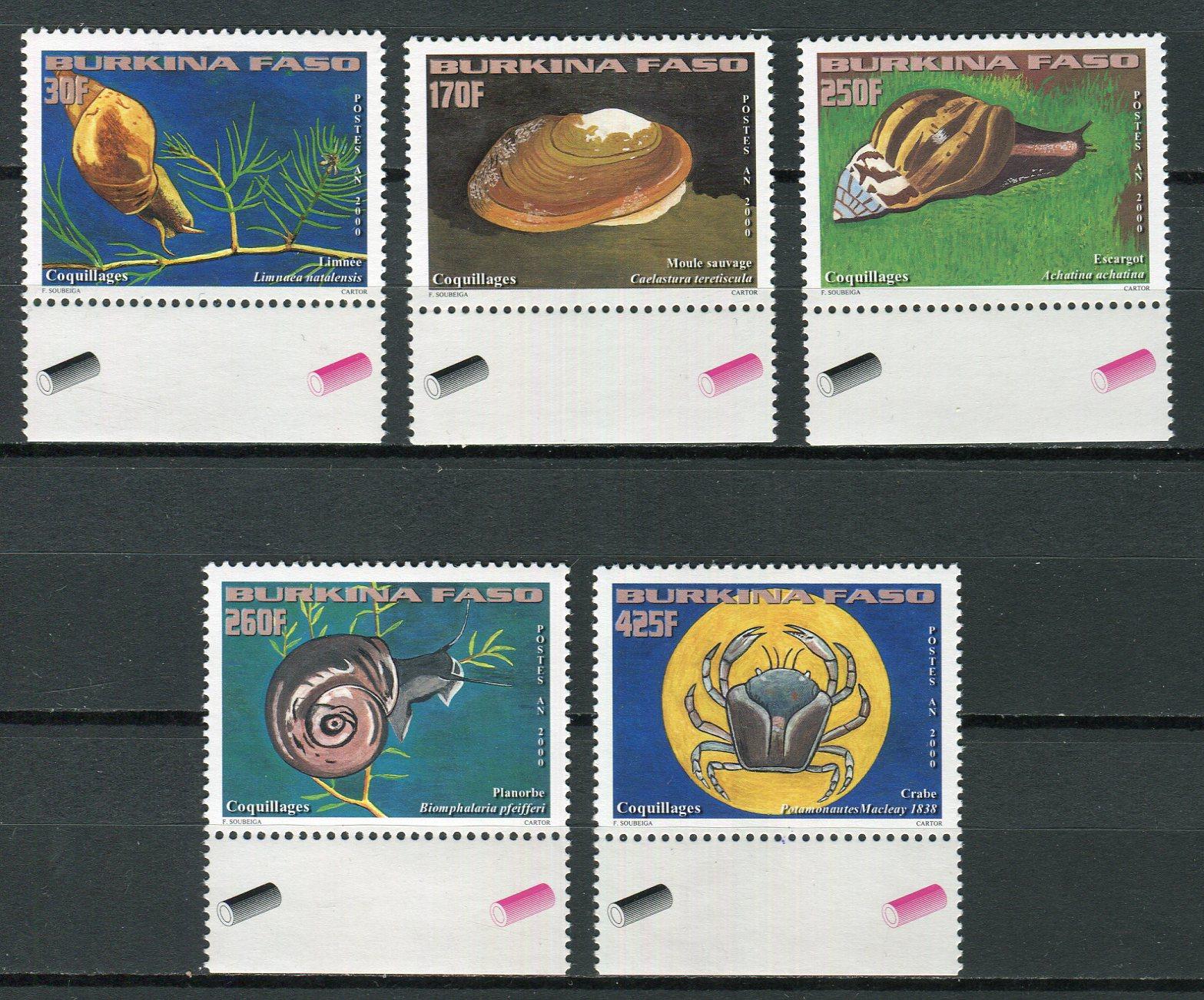 Почтовые марки. Буркина Фасо, 2000 г. №1779-83. Морская фауна.