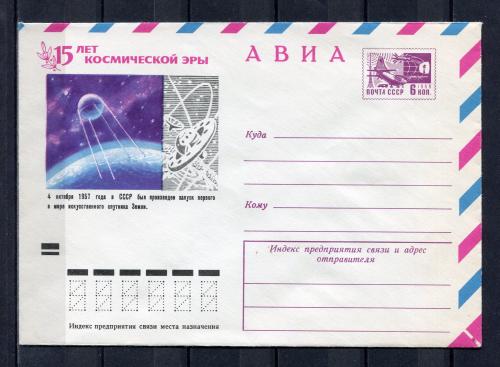 Почтовый конверт ХМК. СССР. 1972г. 15 лет космической эры. КО.