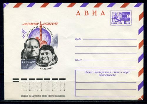 Почтовый конверт ХМК. СССР. 1977г. "Союз-24". "Салют-5". Вторая экспедиция. КО.