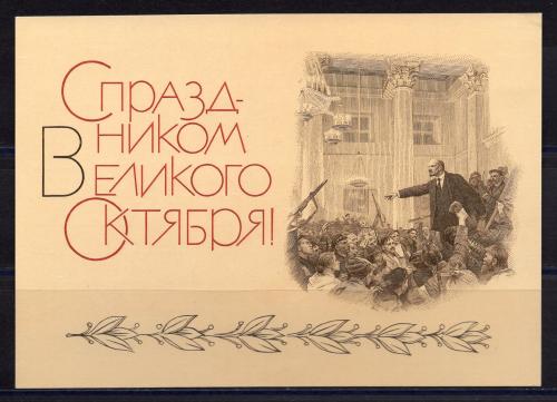 Почтовая карточка. СССР. 1969г. С праздником Великого Октября. С наклейками.