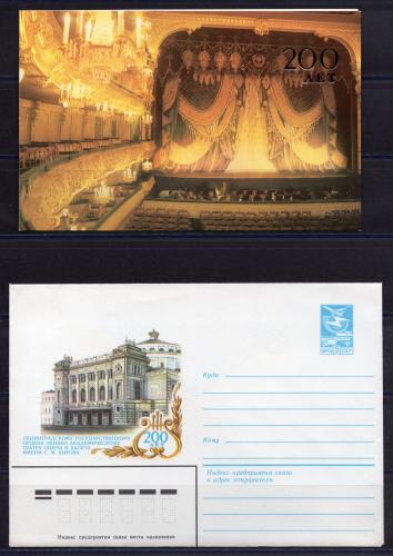 Почтовый конверт ХМК с открыткой. СССР. 1983г. 200 лет театру оперы и балета имени С.М.Кирова. КО.