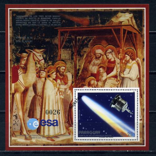 Почтовые марки. Парагвай. 1986г. Космос. Комета. Надпечатка MUESTRA. Блок №429.
