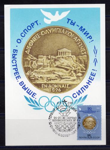 Картмаксимум. СССР. 1986 г. 90-летие первых Олимпийских игр современности.