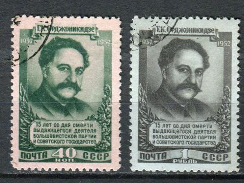 Почтовые марки. СССР, 1952 г. №1677-1678. Е.К. Орджоникидзе.