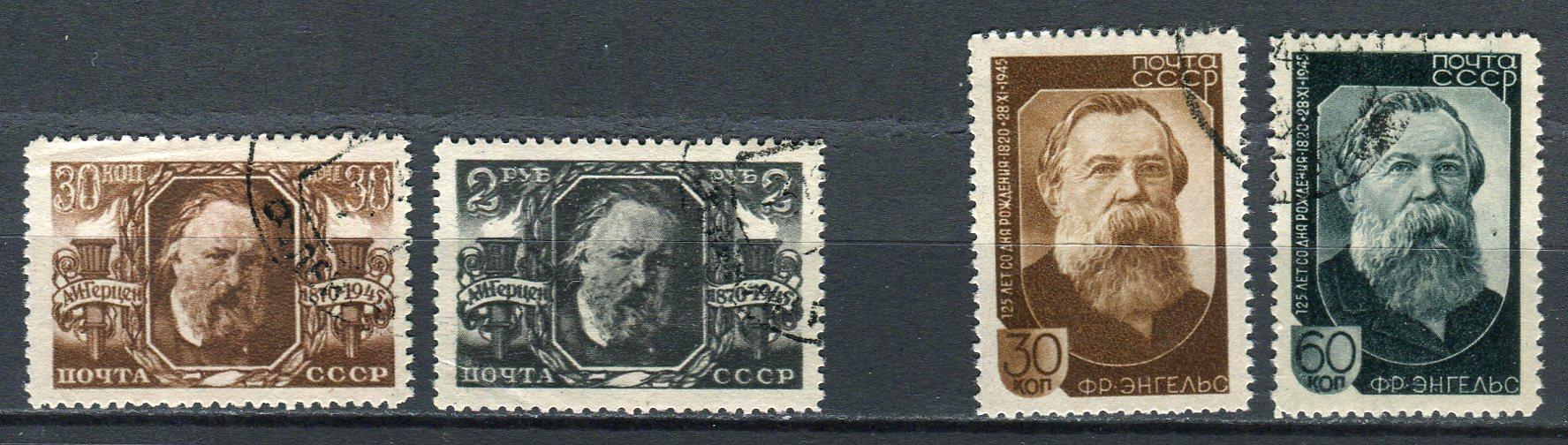 Почтовые марки. СССР, 1945. №1008-1009, 1004-1005. Герцен и Энгельс.