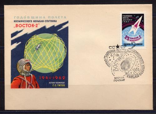Почтовый конверт МГК. СССР. 1962 г. Годовщина полёта "ВОСТОК-2". КО.