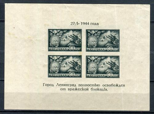 Почтовые марки. СССР, 1944 г. Бл. №945. тип 3. Снятие блокады Ленинграда.