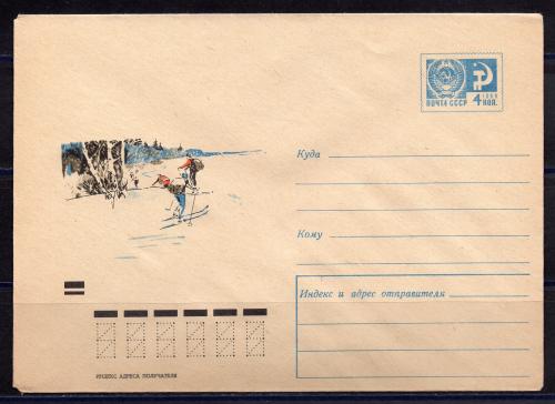 Почтовый конверт ХМК. СССР. 1969 г. Лыжи. КО.