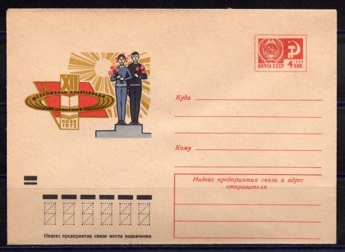 Почтовый конверт ХМК. СССР. 1972 г. Всесоюзная спартакиада школьников. КЗ.
