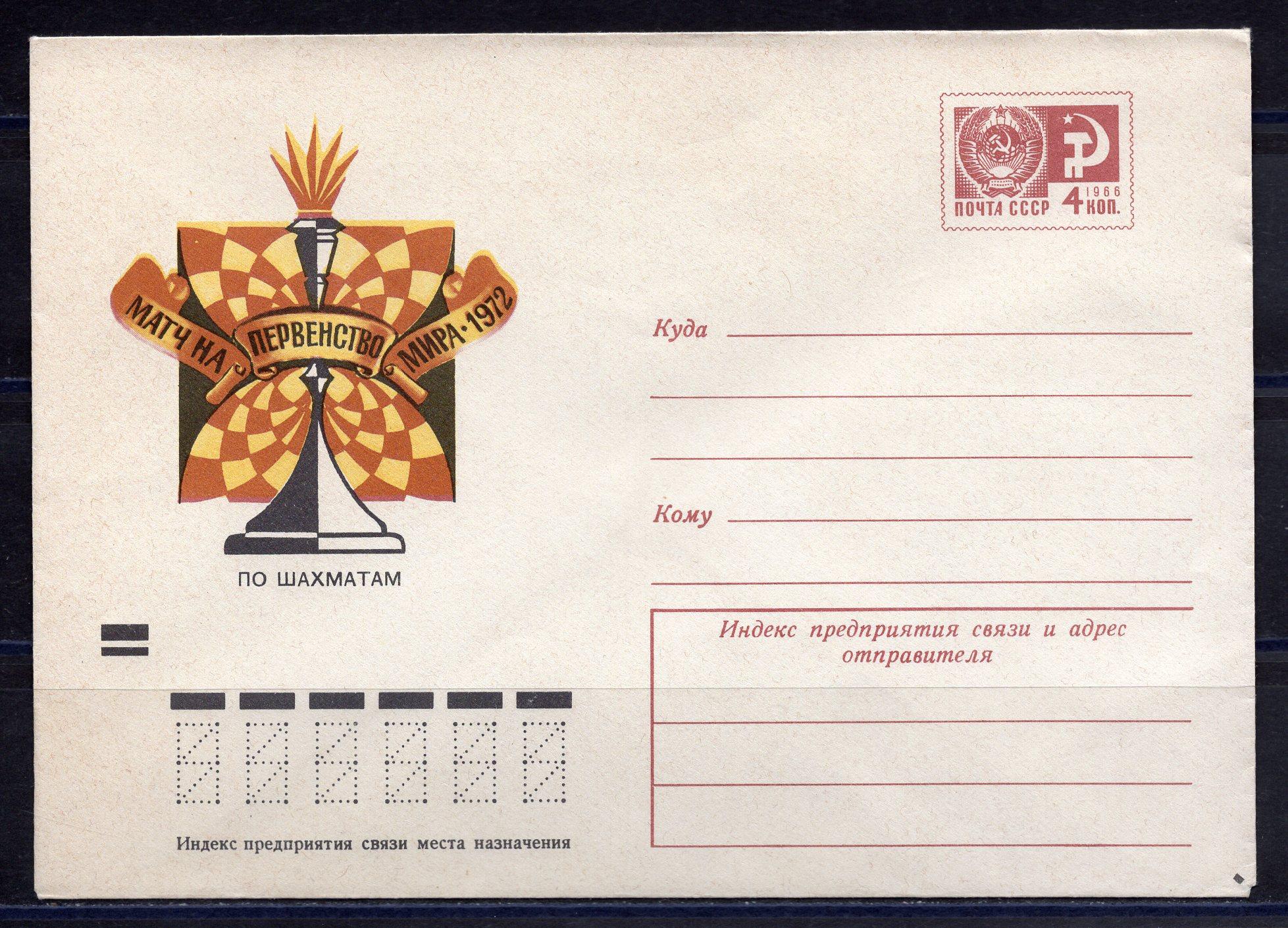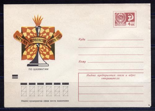 Почтовый конверт ХМК. СССР. 1972 г. Матч на первенство мира по шахматам. КЗ. (кат. 300р)