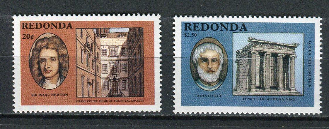 Почтовые марки. Редонда. 1987г. Ньютон и Аристотель. №256-257.