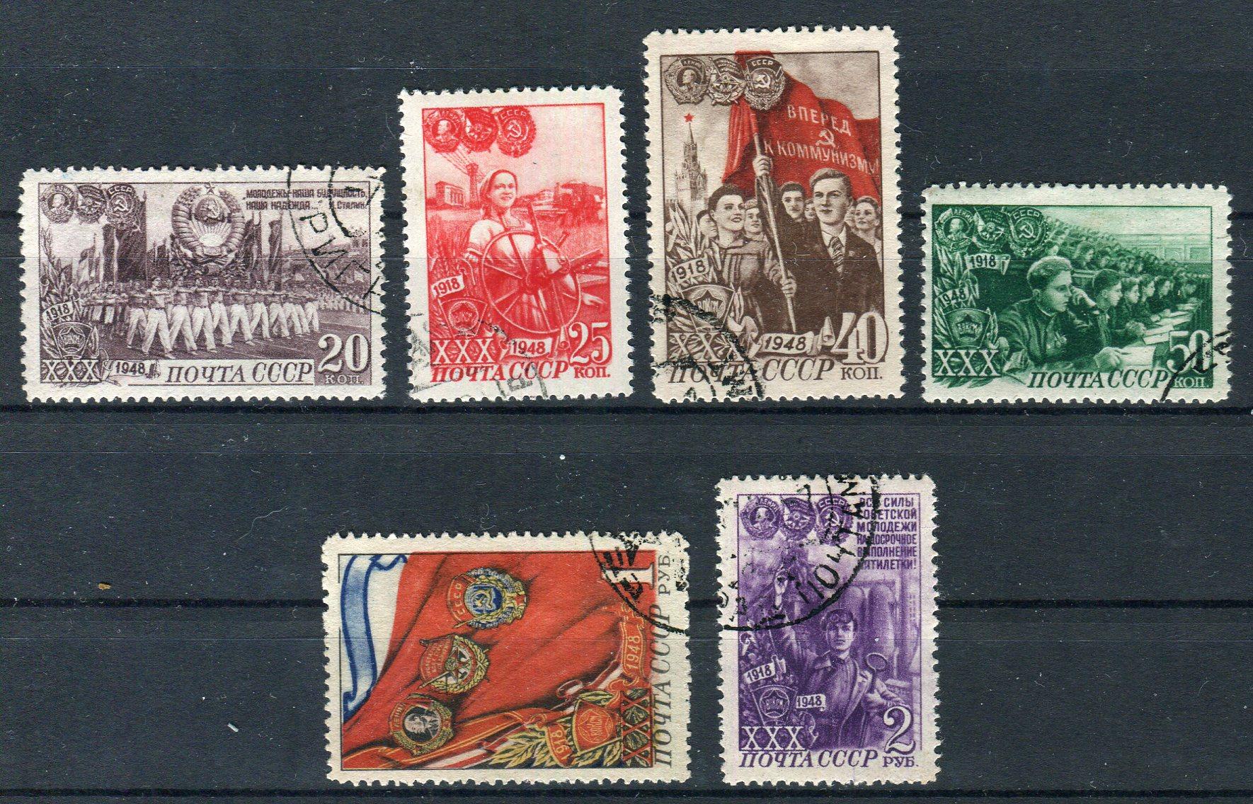 Почтовые марки. СССР, 1948 г. №1322-1327. 30-летие ВЛКСМ.