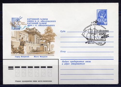 Почтовый конверт ХМК со СГ. СССР. 1980 г. 100 лет картинной галерее имени И.К.Айвазовского. КО.