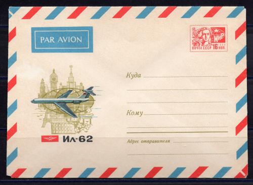 Почтовый конверт ХМК. СССР. 1968 г. PAR AVION. Ил-62. КО.