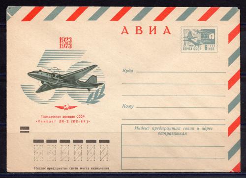 Почтовый конверт ХМК. СССР. 1972 г. Гражданская авиация СССР. Самолет ЛИ-2 (ПС-84). КО.